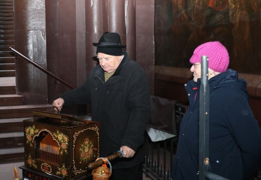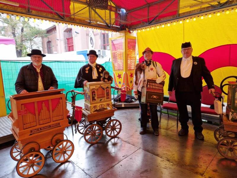 2 Drehorgelspieler der BDF erfreuen die Besucher mit weihnachtlichen Klängen