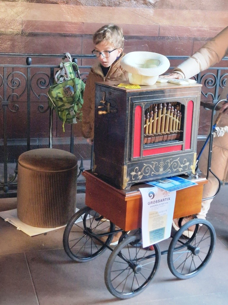 Beni mit Walzenorgel spielt