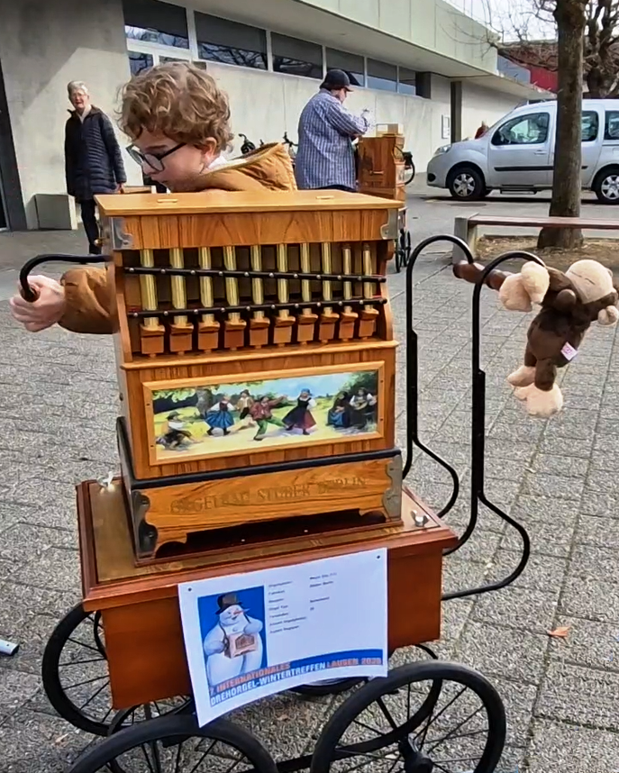 Elia ist voll begeistert vom Drehorgelspiel. Er besitzt diese Orgel und spielt super