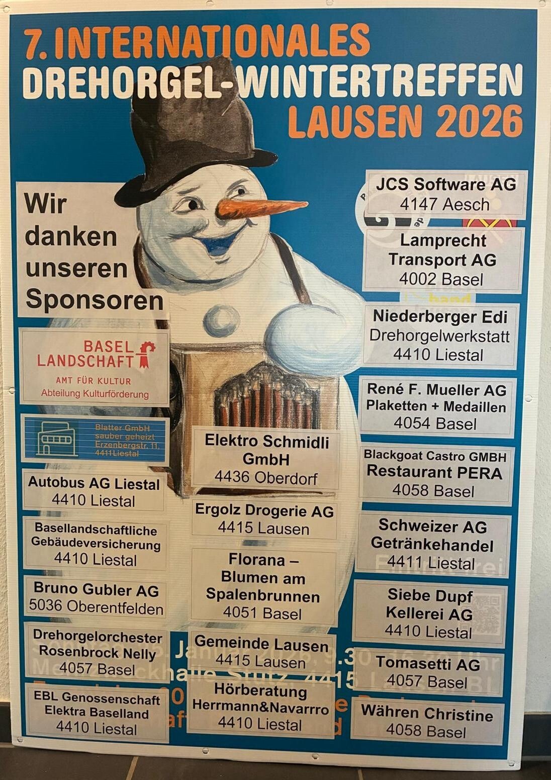 Drehorgel Wintertreffen am Sonntag 25. Januar 2026 in Lausen