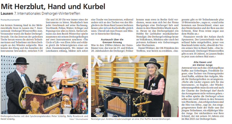 Drehorgel Wintertreffen am Sonntag 25. Januar 2026 in Lausen